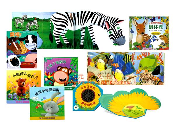 全新推出最新創意玩具書,不但擁有書的內容和形式,也具有玩具的趣味功能;讓孩子每一次打開書,都像翻開一個奇妙的寶盒,驚喜連連!這套玩具書提供0∼6歲不同年齡層的幼兒把玩、探索與操作,幫助幼兒學習各種基本概念。同時有助於嬰幼兒從小接觸書、對書產生興趣、從小養成閱讀的習慣 。