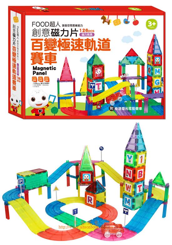 1本產品內含126個磁力片與零件,並附有1份產品說明書,可拼出不同的軌道,不同顏色的磁力片與軌道,不僅能刺激孩子的色彩認知,同時也能增加孩子對於空間的思維能力,嘗試組合成各種不一樣的賽車軌道,能讓孩子發揮創意拼組,體驗賽車樂趣。