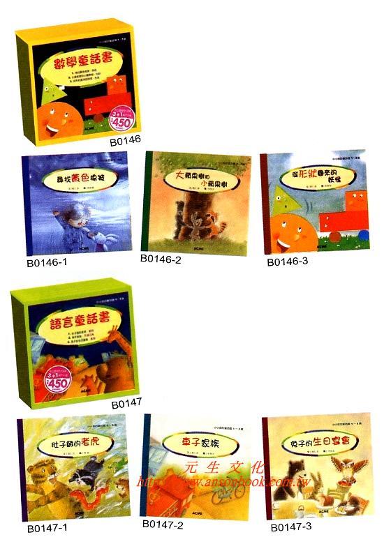 語言童話書:動物、交通工具、食物是孩子相當感興趣的主題,也是培養孩子辨別事物、提升語文能力的重要基礎。語文童話書將這些主題分成三冊(贈童畫識字書),以溫馨的童話,豐富孩子的生活經驗。