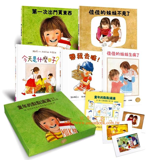 1「童年的點點滴滴」經典繪本集,是由孩子演給孩子看的紙上「劇場」,呈現令人怦然心動的日常──跟著《第一次出門買東西》戰戰兢兢的迎向第一次的挑戰;為家人設想的小心思貫穿《今天是什麼日子?》全書,一氣呵成;《佳佳的妹妹不見了》、《佳佳的妹妹生病了》裡的危機起伏,為無憂無慮的生活帶來小衝擊;妹妹的小願望引爆《帶我去嘛!》裡的兄妹諜對諜大戰,幽默的互動展現衝突又親愛的手足情。