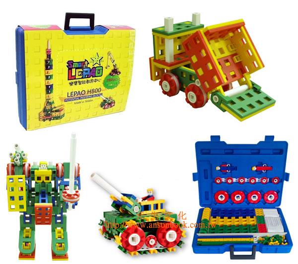 樂寶積木可由大A、大H及管子等的應用,使其所作出的作品轉動,較具生命力,亦更能吸引小朋友不斷創造更好玩的作品,新上市的樂寶Baby積木,更符合學齡前小朋友的手指結構,在探索中更能得到學習的樂趣。主體H形的積木可由六個面的方向連接,亦可水平連接及直角連接,比一般積木只能由上連接變化較多,小朋友的創造空間亦更廣更寬;一般積木所做實體較刻板、生硬,無法引起小朋友的興趣。另外一般積木常發現小朋友到處亂丟,原因是一般積木容易散落,不斷打擊小朋友鬥志、興趣,而樂寶積木本身結構方法不同不易鬆開,輪子轉動過程不會脫落。