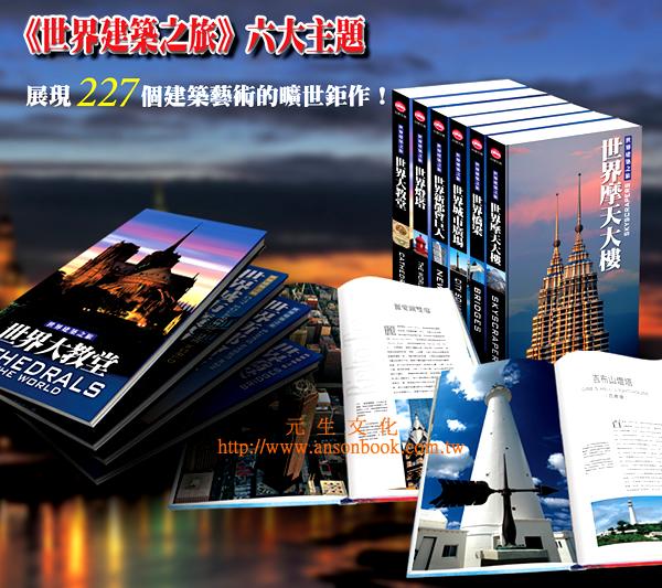 1建築是為人類活動提供空間,具有各種功能的構造物。最古老的建築論文《建築十書》說,一個好的建築物需具有堅固、實用、美觀三大要素。世界建築之旅蒐羅全球百位頂級建築大師227件絕讚的空間作品44個摩天大樓、36座大教堂、44個城市廣場、34座橋梁 、37座燈塔,處處展現他們對創意的掌控,巧妙整合材料、科技、光線和陰影,挑戰世人對空間運用的極限、對美學展現的挑剔、對生活科技的善用。建築是人類文化的符號,也是曠世藝術作品,歷史上許多重要的文明都有其獨特的代表性建築成就,讓我們詠讚!